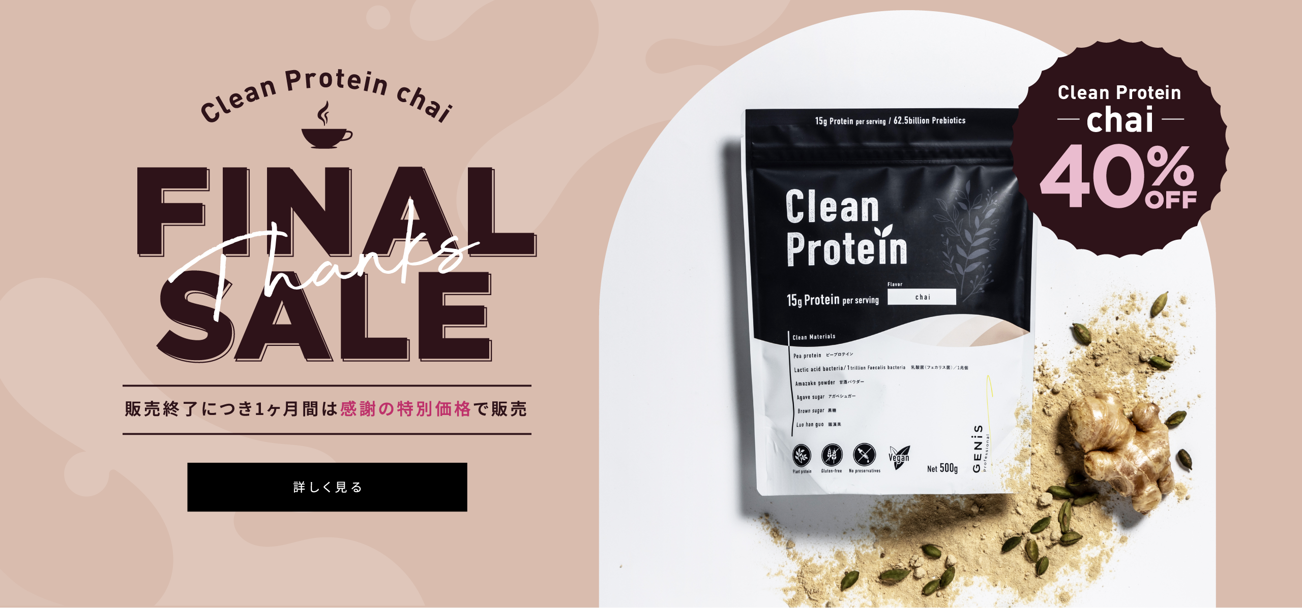 【お知らせ】Clean Protein チャイ味 販売終了とFINAL THANKS SALEのご案内